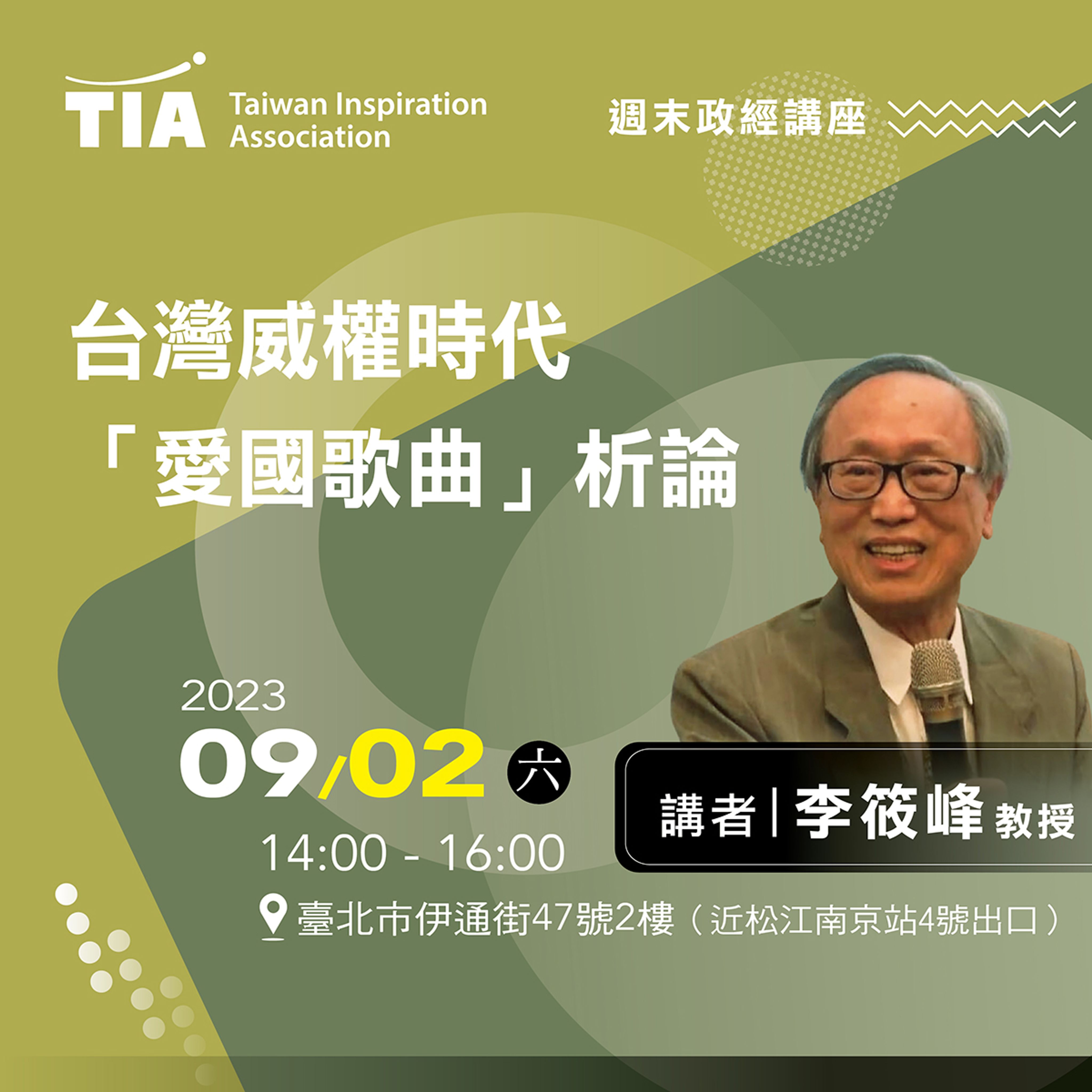 李筱峰教授,知名歷史學者與政治評論家,專攻台灣史。著作等身,包括《快讀台灣史》、《小瘋人生》、《解讀二二八》、《台灣之國》、《台灣近現代史論集》、《從500張圖入門台灣史》。為了讓國人能夠更認識台灣歷史,除了出書,甚至有用唱歌來詮釋。讓我們一起來聽聽這位重量級來賓的演講,談談台灣威權時代的愛國歌曲,千萬不要錯過喔!