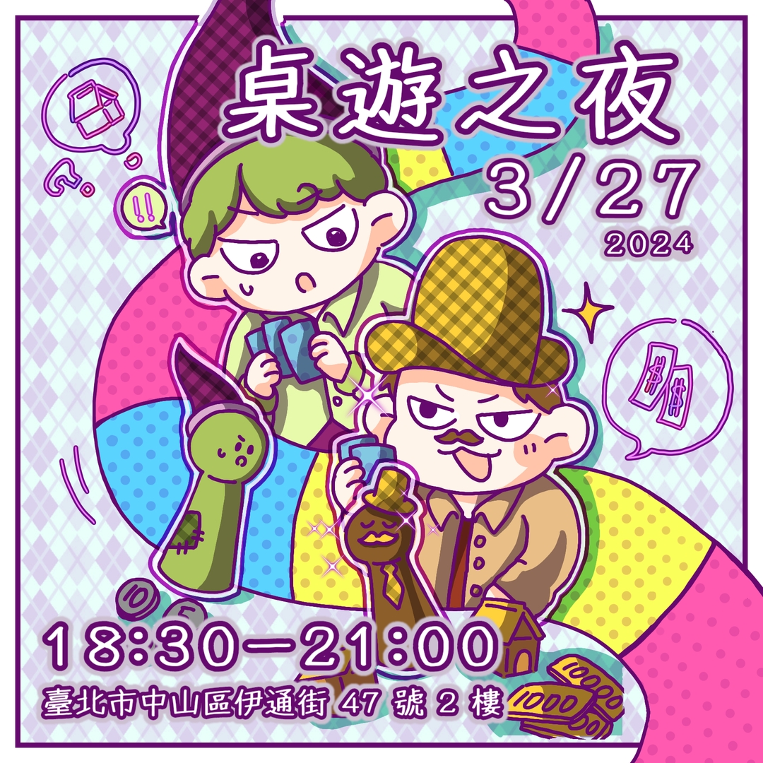 🕢 時間:03/27(三)18:30-21:00 (18:30入場即可同樂,九點之後不即刻散場,玩至一個段落即可)